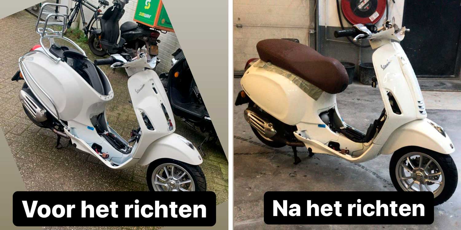 Wij voorzien enkel het richten van de Vespa! Geen spuitwerk of uitdeuk werkzaamheden. Wij richten ook geen voorvorken.